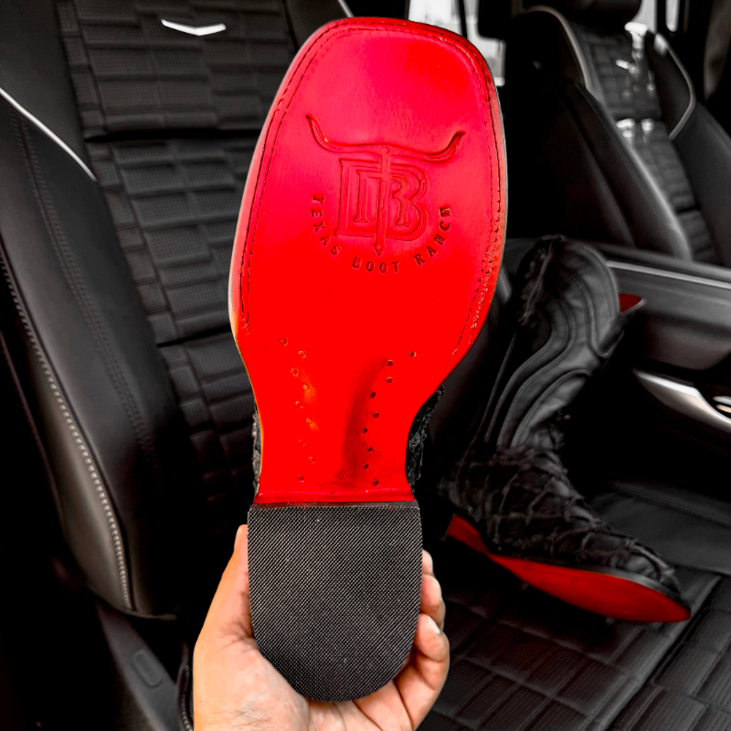 Matte Black Jumbo Pirarucu Leather Boots - Square Toe