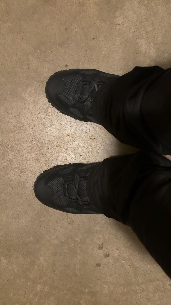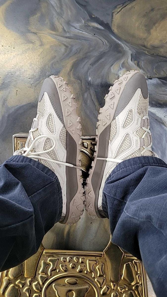 Comfortable, with good fit and nice bounce to the sole. A little large in my usual size.