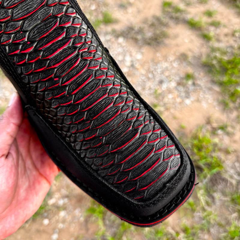 Onyx Cherry Python Leather Boots - Square Toe